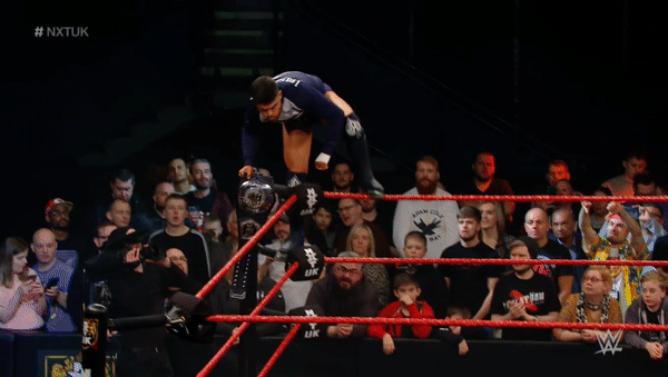 Forearm Smash From The Apron + Enzuigiri Kick From The Apron + Slingshot Cutter